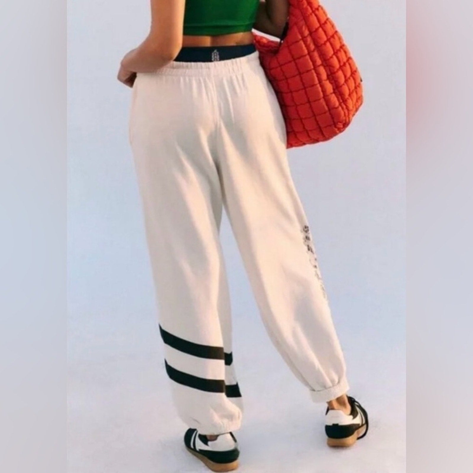 Essential sweatpants featured in a soft fabrication and slouchy fit with oversized buti logo detailing and cinched bottom hems. Mid-rise, slouchy, relaxed fit, Soft fabrication, oversized graphic, smocked elastic waistband with adjustable drawstring, pockets for hands, cinched bottom hems. These soft sweatpants are the perfect throw-on-and-go activewear essential.