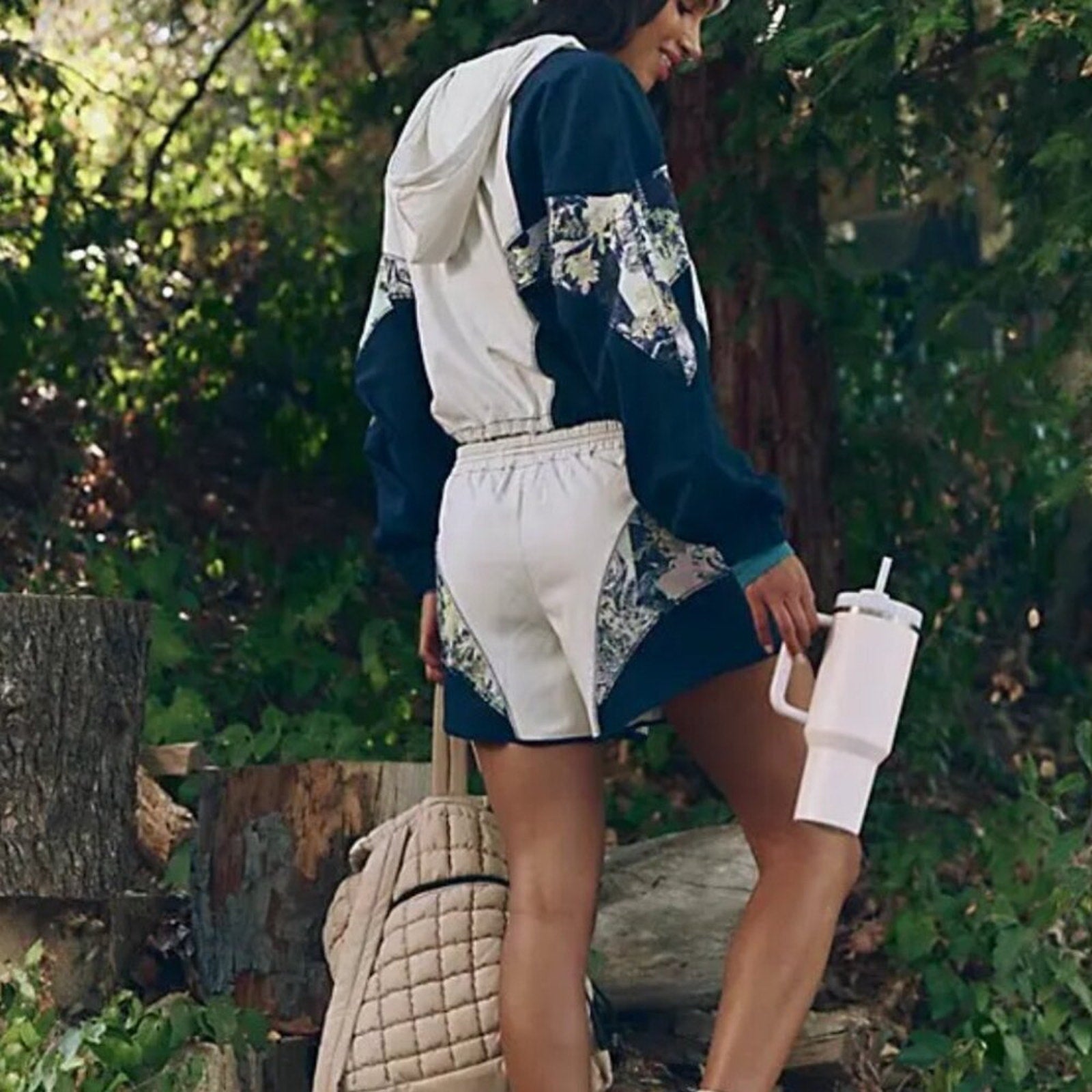 The perfect pair to take you anywhere from the trail to the track and back, this super versatile style adds the ideal vintage-inspired, sporty touch to your sets collection. Designed to take your activewear sets to the next level, this so cool style features a zip-front, hooded jacket and coordinating shorts with sporty color blocking and defined printing for the perfect finish.