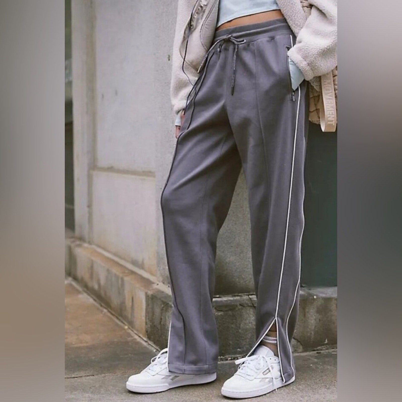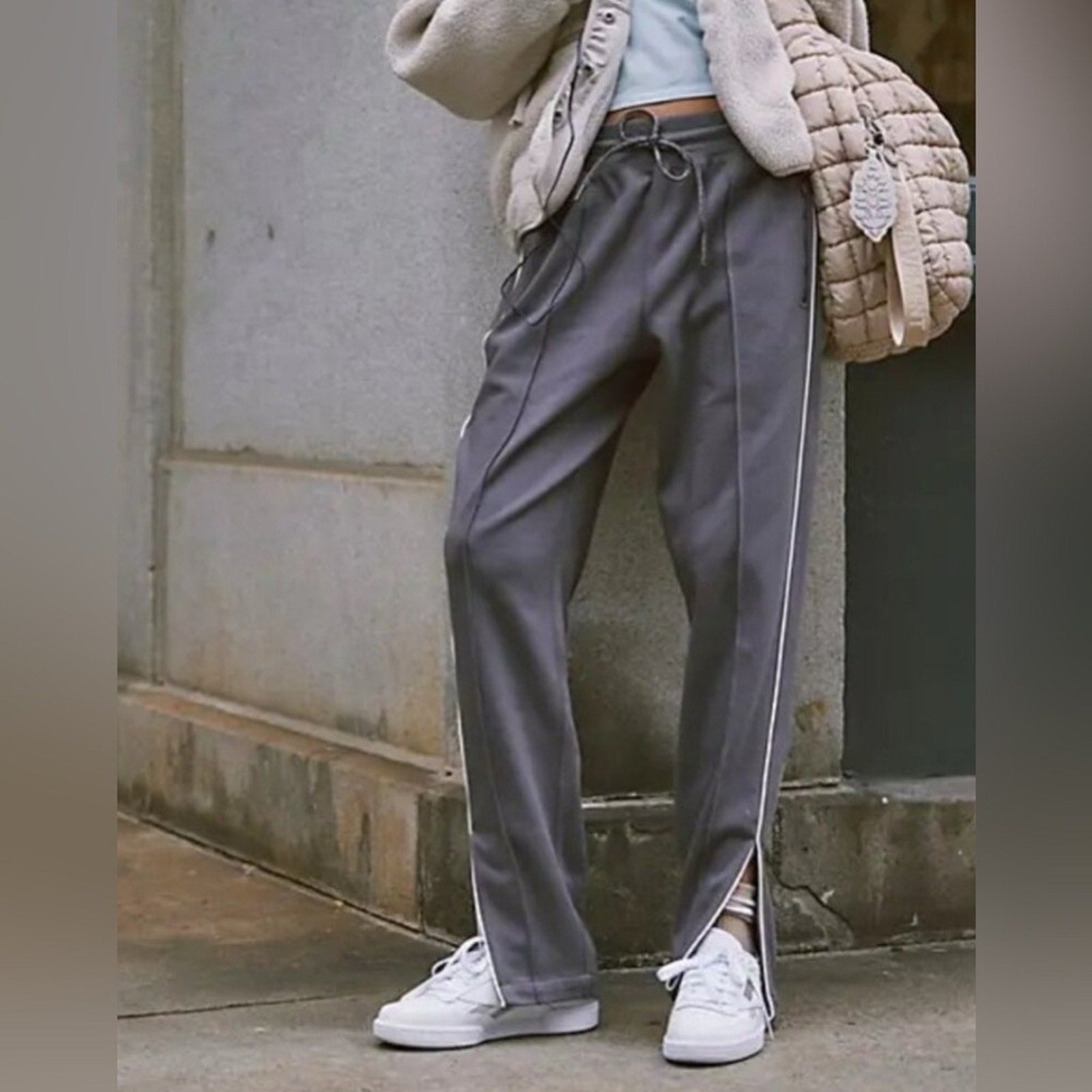 Take the classic track pant up a notch with this super cool pair featured in a high-rise design with defined pleating at front, striping at sides, and zipper-adorned bottom side slit for added functionality. Classic, tailored style, High-rise design; drawstring waistline; side pockets; striping at sides; zipper-adorned detail at bottom hem. The perfect throw-on-and-go pant to take you to and from your workout and beyond.