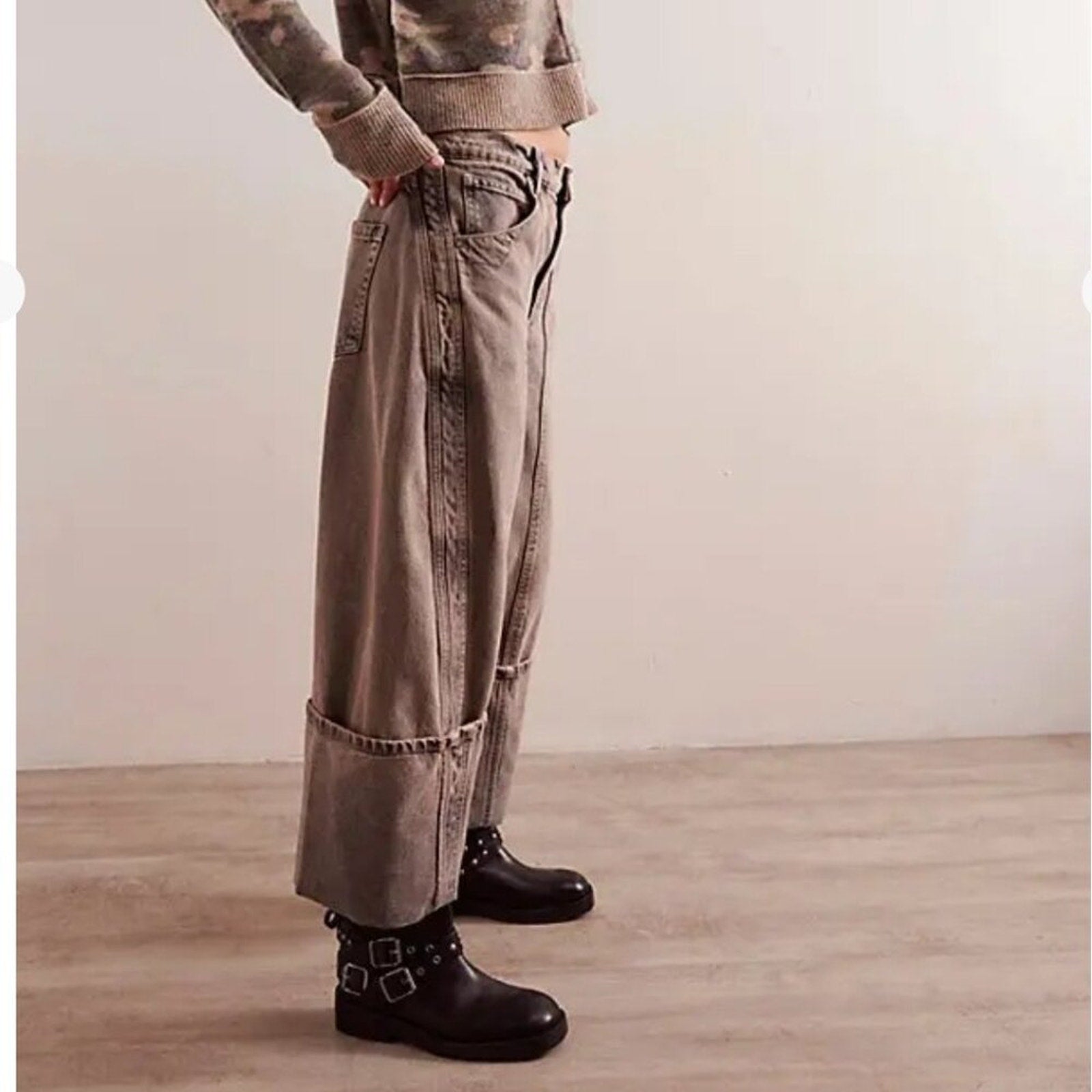 Cool and cuffed, these need-now jeans from We The Free collection are the perfect elevated denim staple. Mid-rise, loose tapered barrel silhouette, Zip fly and button closure, flattering seaming throughout, exaggerated cuffed hemline, five-pocket design. Toughened-up with moto boots or unexpected with ballet flats, this pair has endless ways to wear. Free People relaxed barrel jeans Free People high rise barrel jeans Free People trendy barrel leg denim