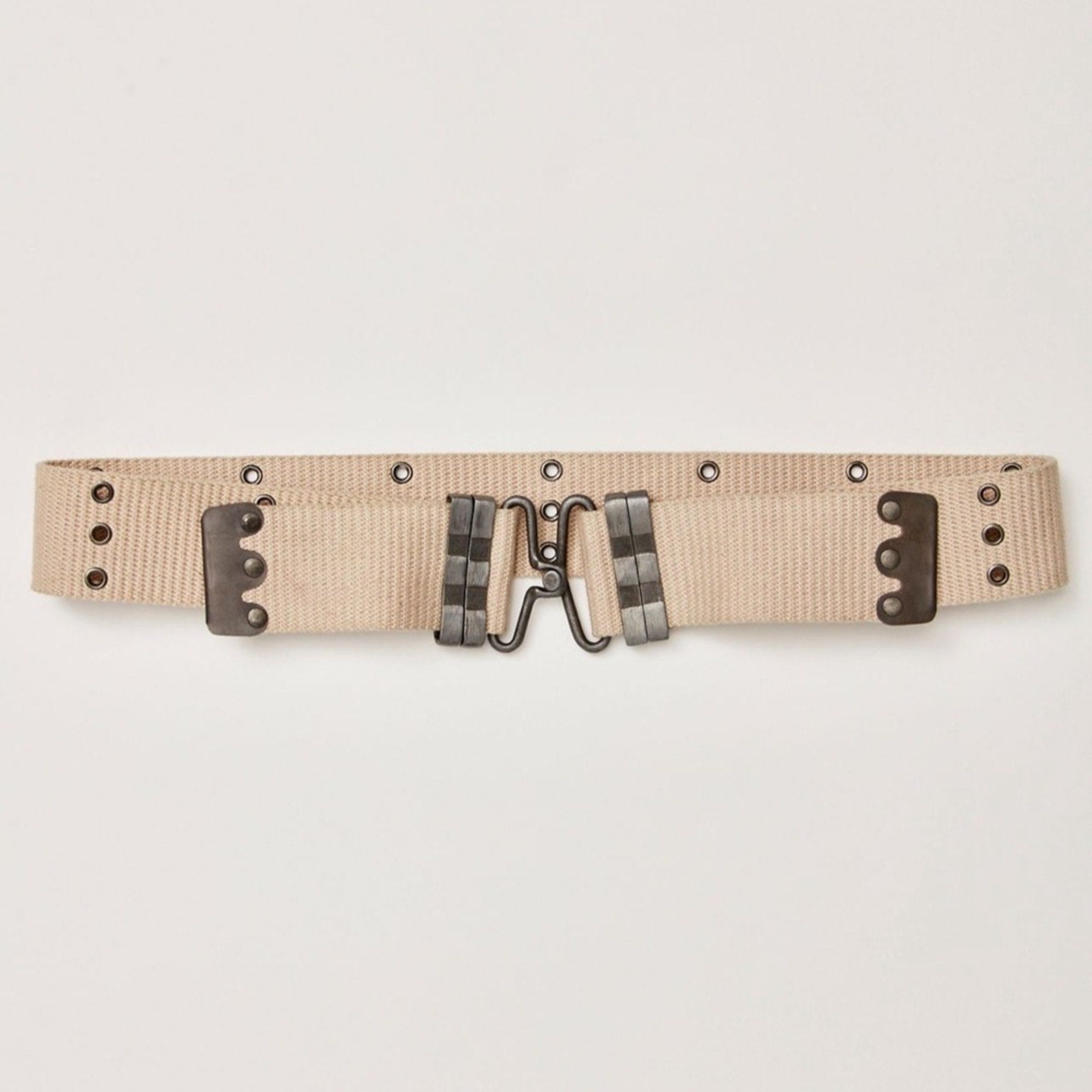 Add a strong finishing touch to your look with this utility-inspired hip belt, perfect for everyday 'fits to festival wear. Designed to be worn on the hips , this belt is perfect with lower -rise bottoms or sling below the waist. Adjustable clasp closure, Metal belt loops and eyelets.