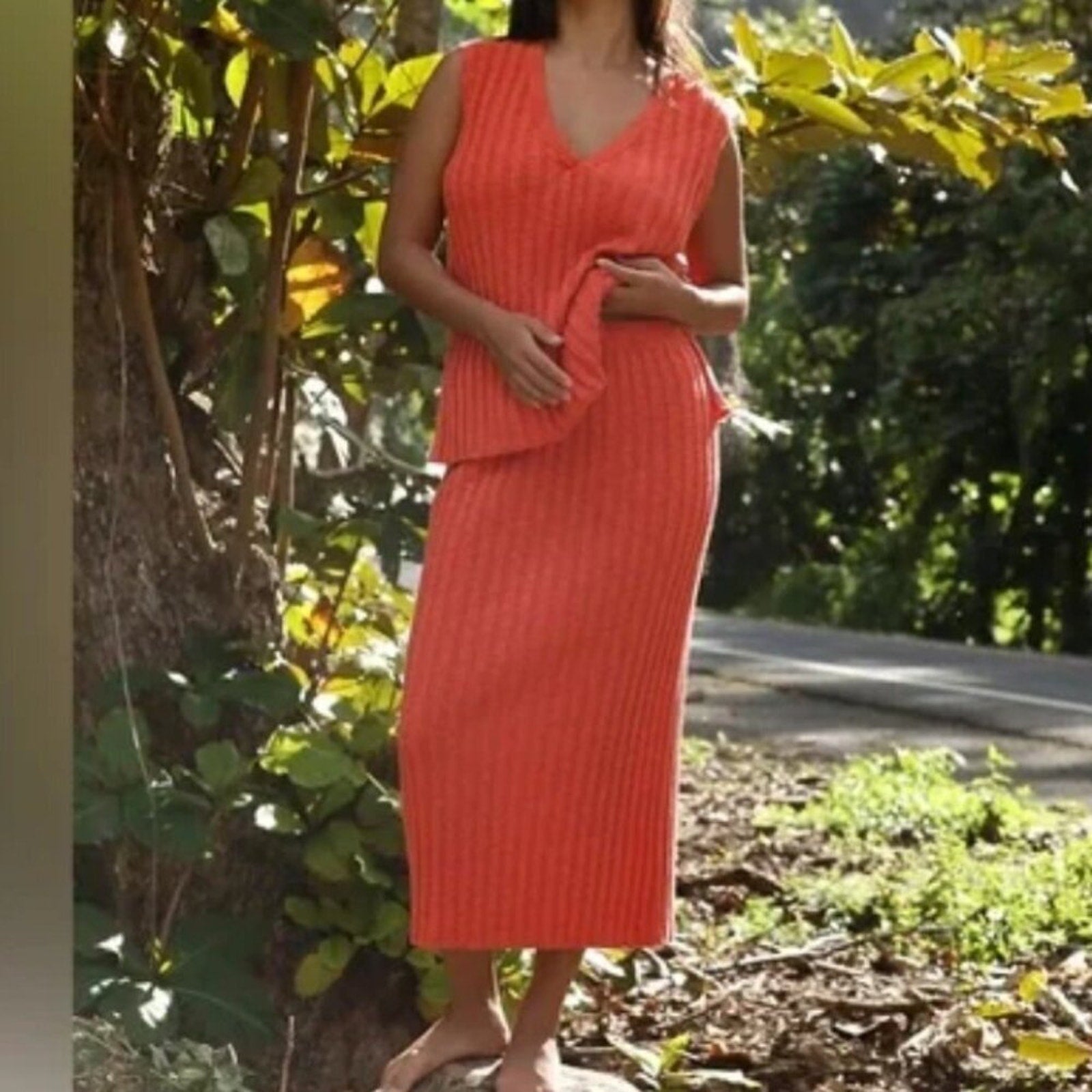 A stunning 2-in-1 instant outfit from our free-est collection, this sweater set is sure to stun with every wear. Vest: Relaxed, sleeveless silhouette; Skirt: High-rise, relaxed column fit, Vest: V-neckline, vented hem feature, dropped armholes, textured ribbed fabrication; Skirt: Pull-on design, textured ribbed fabrication, ankle-length, Perfectly paired together or effortlessly styled separately, this set has endless ways to wear.