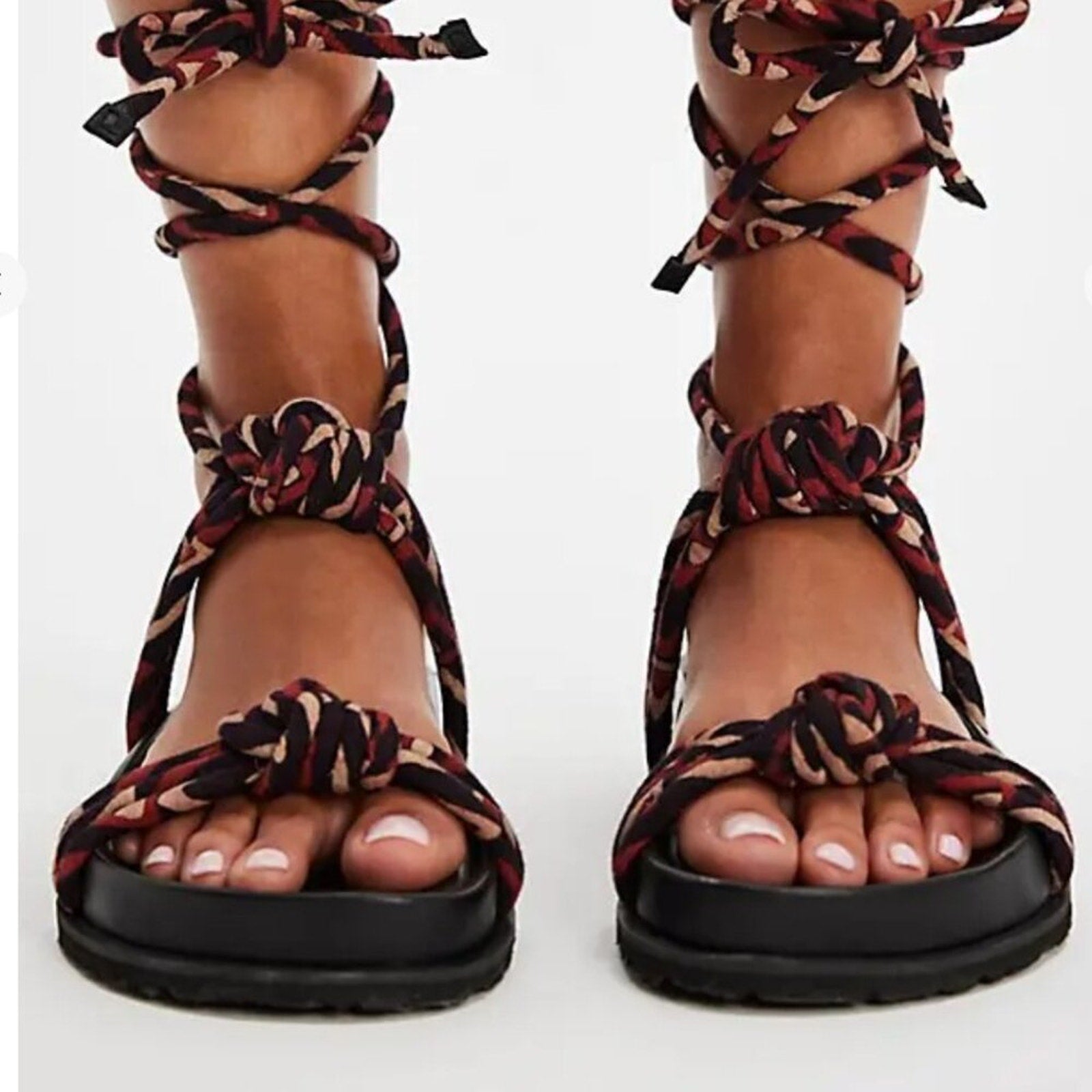 NWOT Free People Resort-Ready Wrap Sandals in Berry Combo