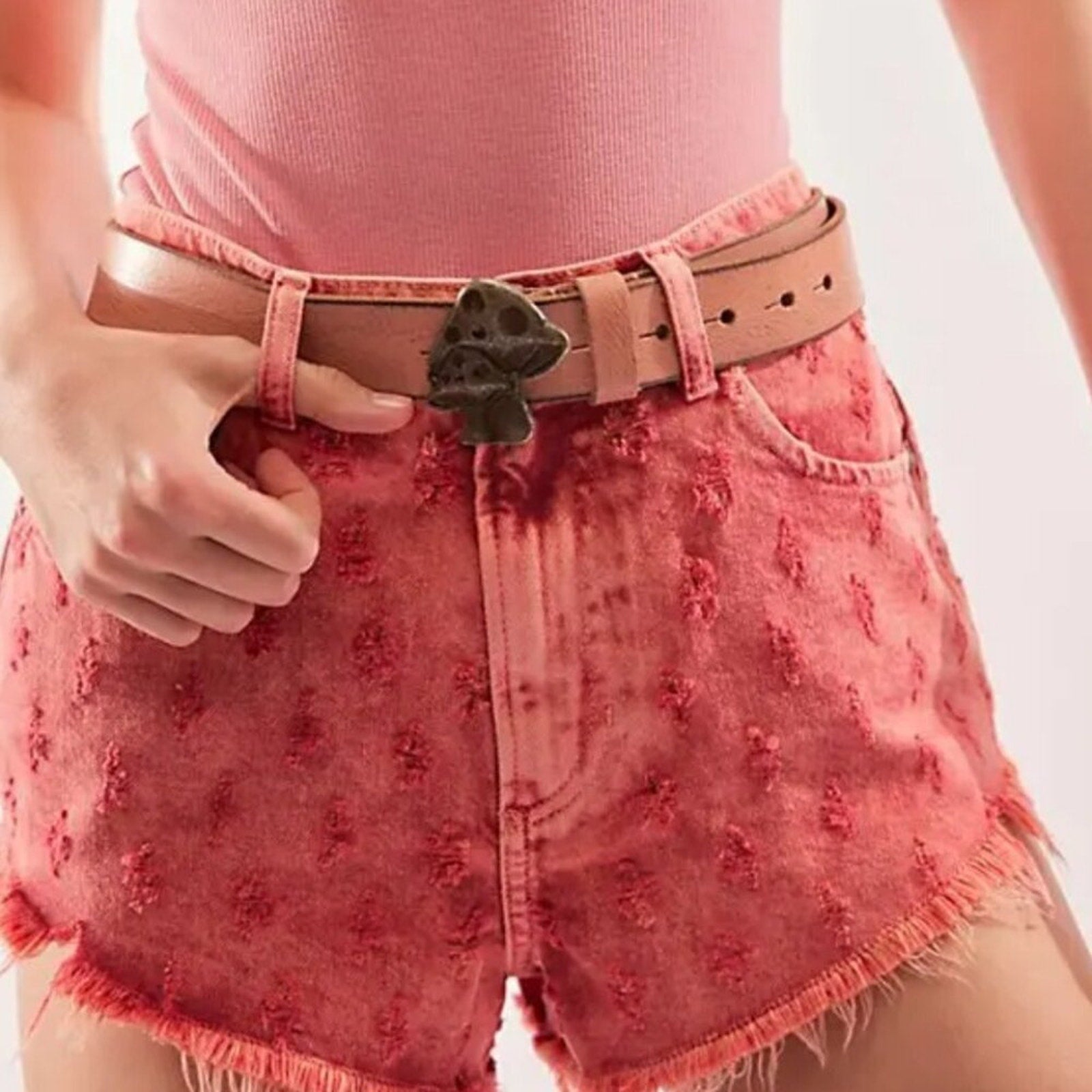Ready for anything in a super whimsical design, this stunning belt is featured in a luxe leather fabrication with mushroom-adorned metal buckle for an added special touch.