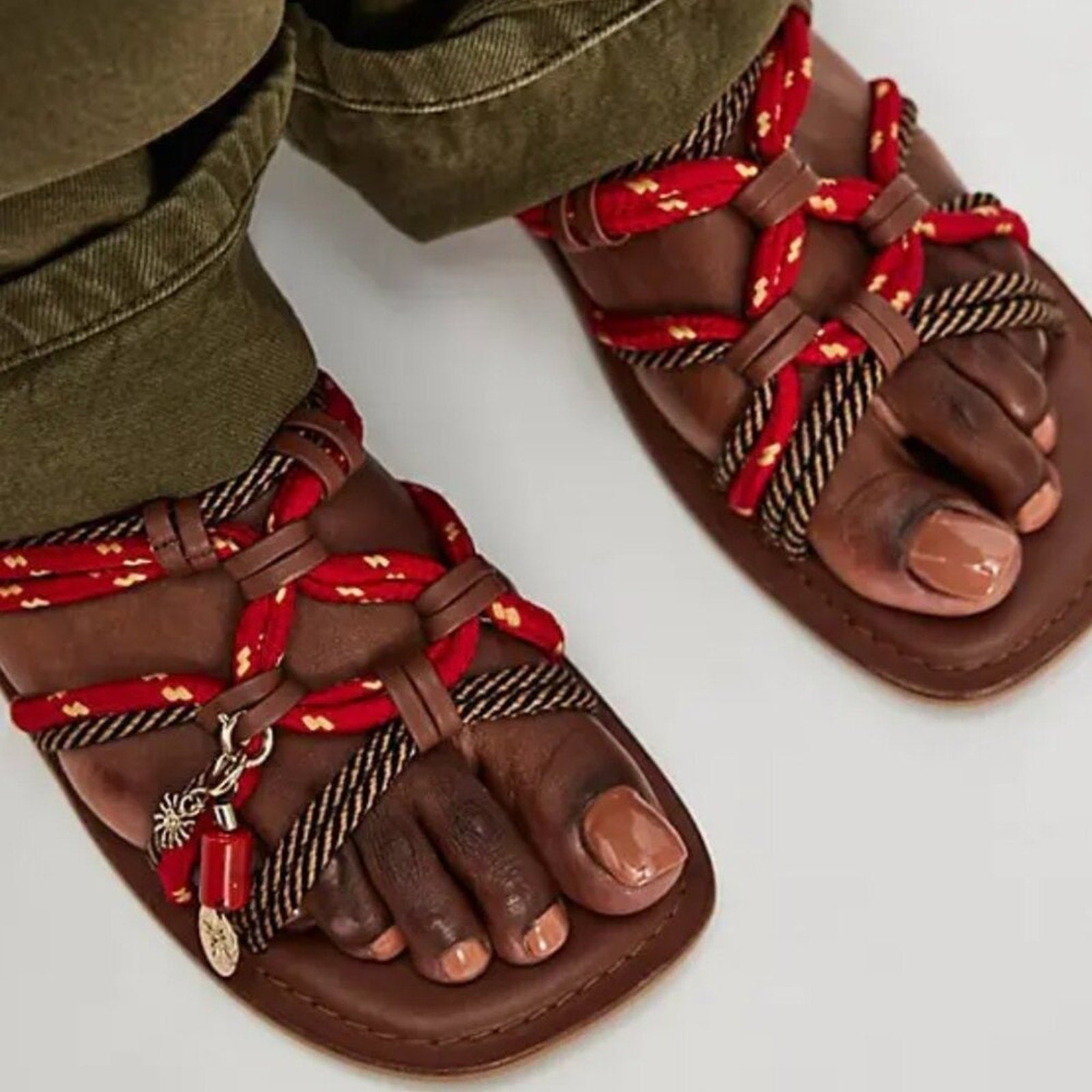 NWT Free People Tide Up Rope Sandals in Red/Tan